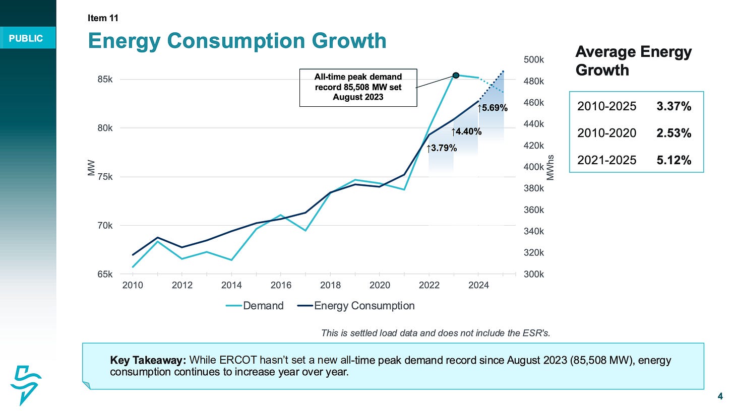He added a sober note: in the next few years, mass-market customers could get squeezed by rising load in the short term, though he thinks in the longer term, Texas will have continued investment in the grid and new technologies and abundance for consumers.