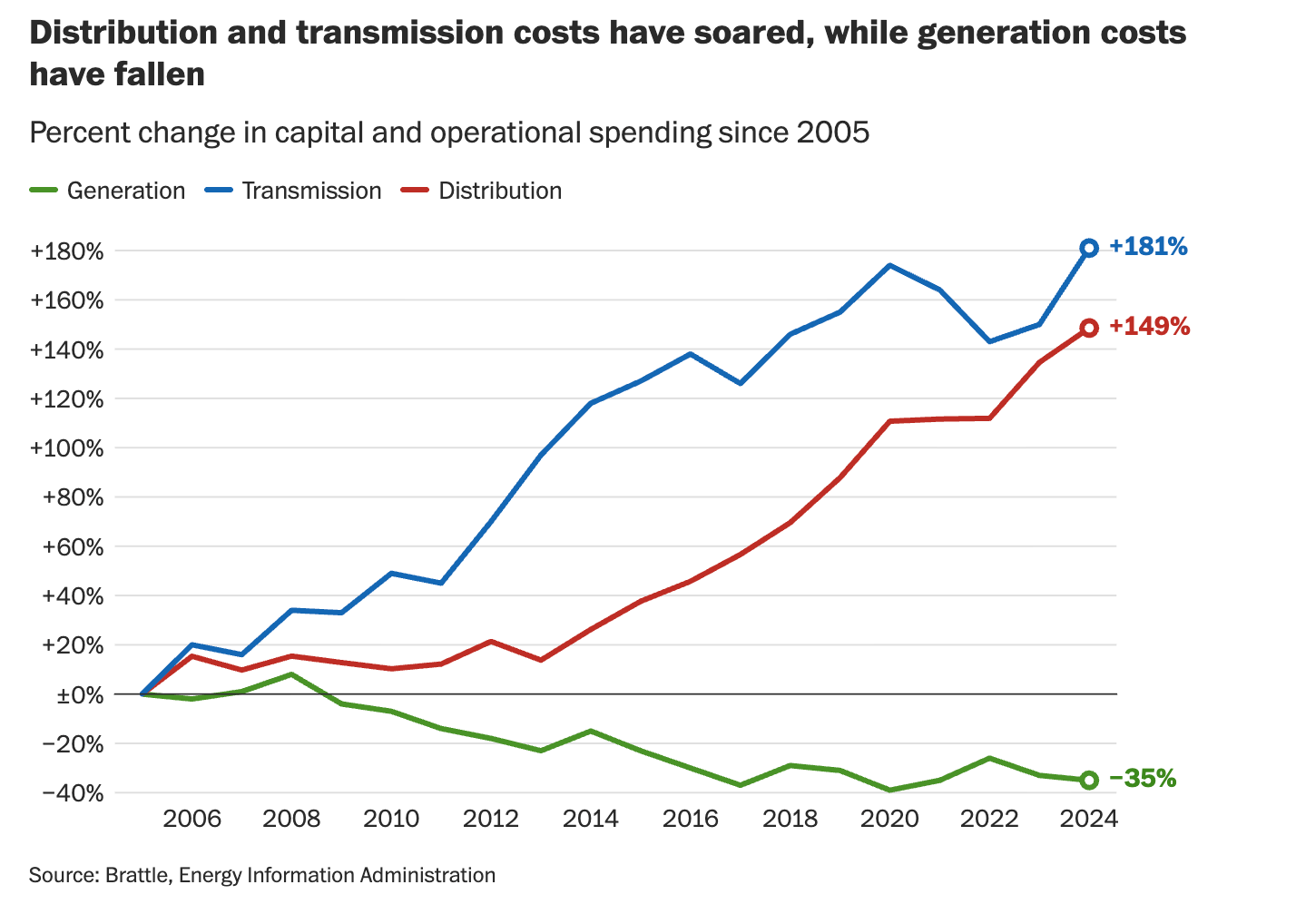 Electricity is complicated and there are many reasons why costs are going up by a lot in some places and by a little in others. The simplest answers are appealing and often wrong. I wrote last week about the excellent LBL/Brattle study on the causes of rising costs. Yesterday, the Washington Post covered the rising costs very well, including all the complexity and nuance.